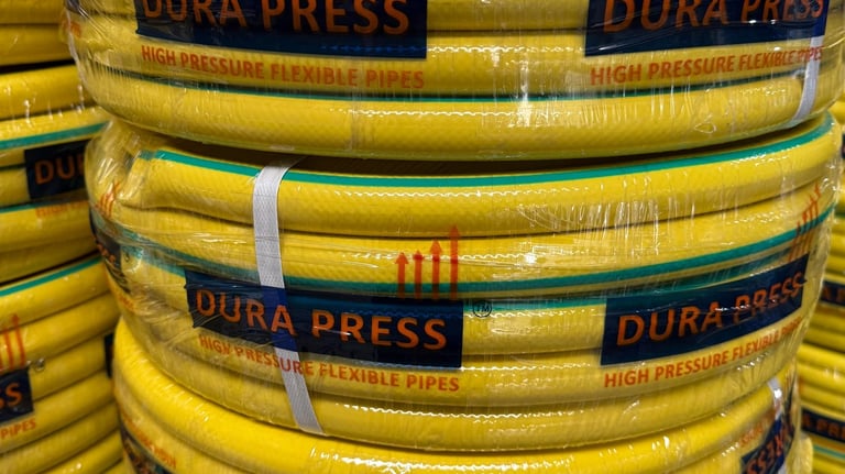 Dura Press® represents the highest standards in PVC hose engineering and performance. Designed to meet the region’s demanding climates, every hose delivers exceptional flexibility, strength, and durability, ensuring long-term reliability for residential, commercial, and industrial applications. With advanced multi-layer construction, reinforced braiding, and European-standard manufacturing quality, our products set the benchmark for premium hose technology in the Gulf Cooperation Council (GCC) and African markets.